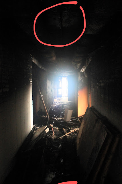 | Tulipalossa palanut käytävä, johon vihdoinkin pääsimme 25.4.2023 |